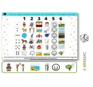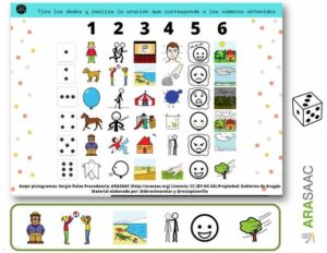 Cristina González Otto et Rocío Domínguez Páez ont publié sur le portail Arasaac l’idée d’un jeu qui s’en inspire avec pictogrammes imprimés et un jeu de dé : L’ activité part d’un tableau à double entrée reproduisant les faces du dé et les numéros de 1 à 6 qui correspondent à l’ordre des pictogrammes dans la phrase. Les pictogrammes sont assemblés sur la seconde feuille pour constituer la phrase.