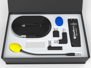 – USB KeybardMike (commercialisé fin janvier 2022) : Un élégant et discret microphone monté sur un flexible court, connecté à l’adaptateur audio usb par l’intermédiaire d’un connecteur coudé. Contenu du pack : adaptateur audio usb, microphone, adaptateur coudé pour microphone, convertisseur USB 2.0 vers USB Type C , rallonge usb. Prix : 199 €