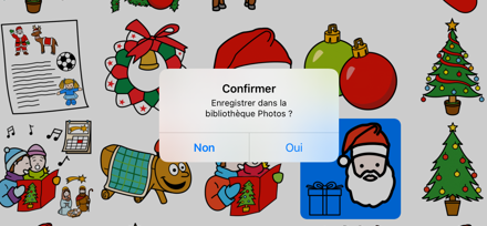 La sélection d’un pictogramme affiche la fenêtre de téléchargment dans la bibiothèque photos.