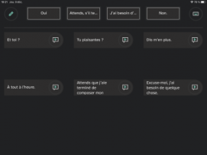 L’utilisateur peut accéder à des phrases fréquentes qui seront préprogrammées pour une communication facile et rapide. C’est possible d’éditer plusieurs phrases qui seront préenregistrées.