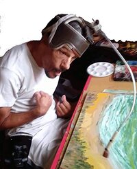 C’est le cas de Ray Peloquin, surnommé The Head Stick Artist, qui peint et commercialise ses œuvres depuis son site :