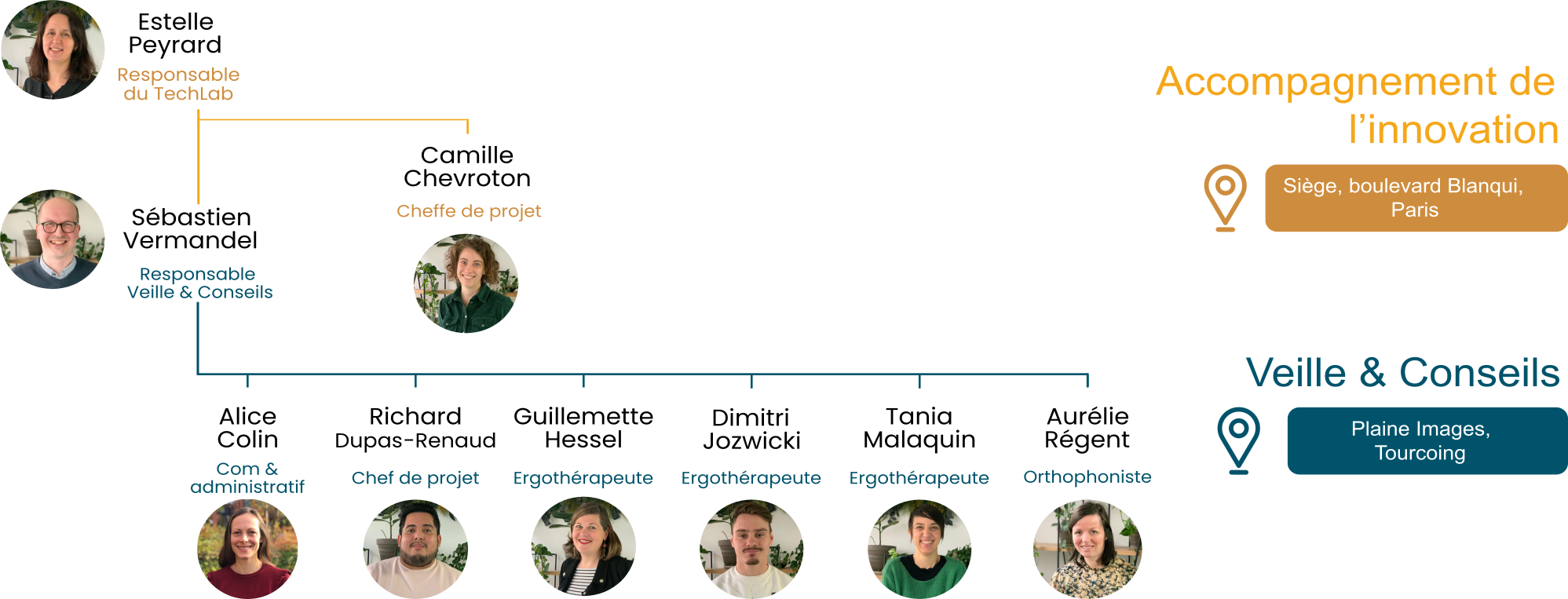 Les ergothérapeutes et orthophonistes experts conseil du TechLab sont implantés à la Plaine Images (Roubaix/Tourcoing), au cœur d’un écosystème numérique dynamique. Il affirme ainsi sa volonté de coopérer avec des entreprises locales, de convaincre les producteurs de contenus de prendre en compte les normes d’accessibilité et de poursuivre son travail de veille sur les technologies susceptibles de changer le quotidien des personnes en situation de handicap.