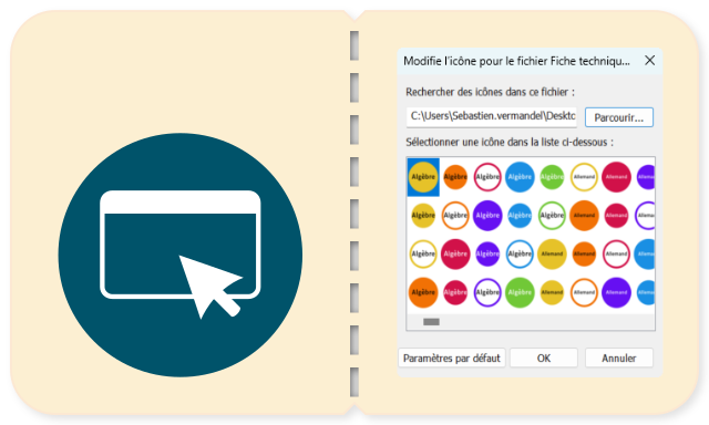 A l’occasion de la rentrée scolaire 2020, TechLab a réalisé un pack de 576 icônes correspondant aux matières enseignées au primaire et collège à l’attention d’élèves dyspraxiques, mais bien sûr utilisables par tous.