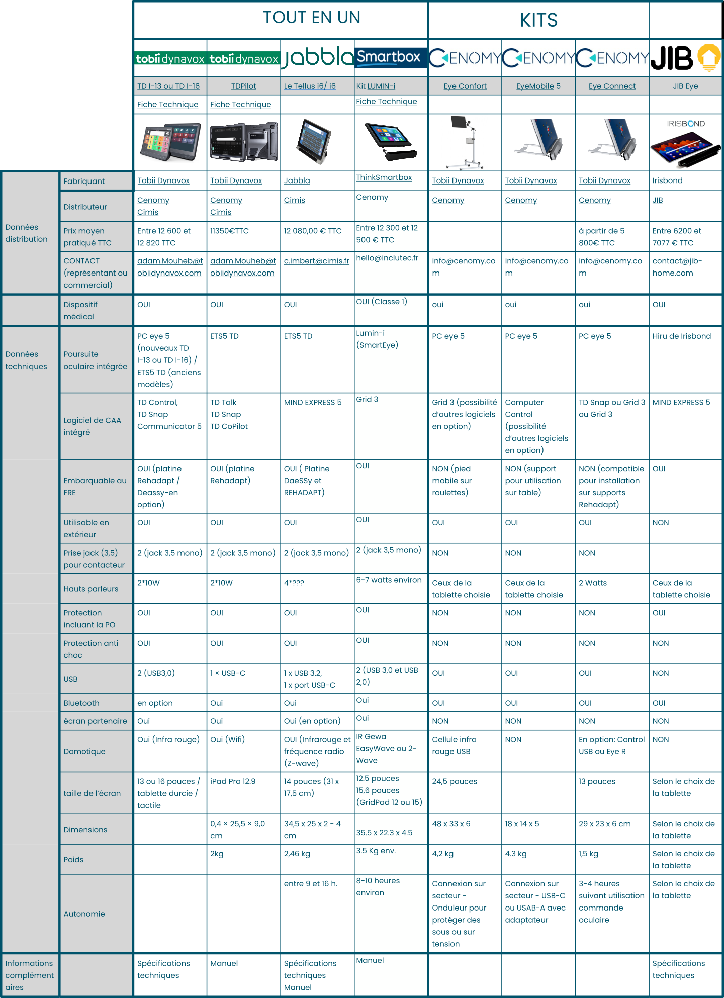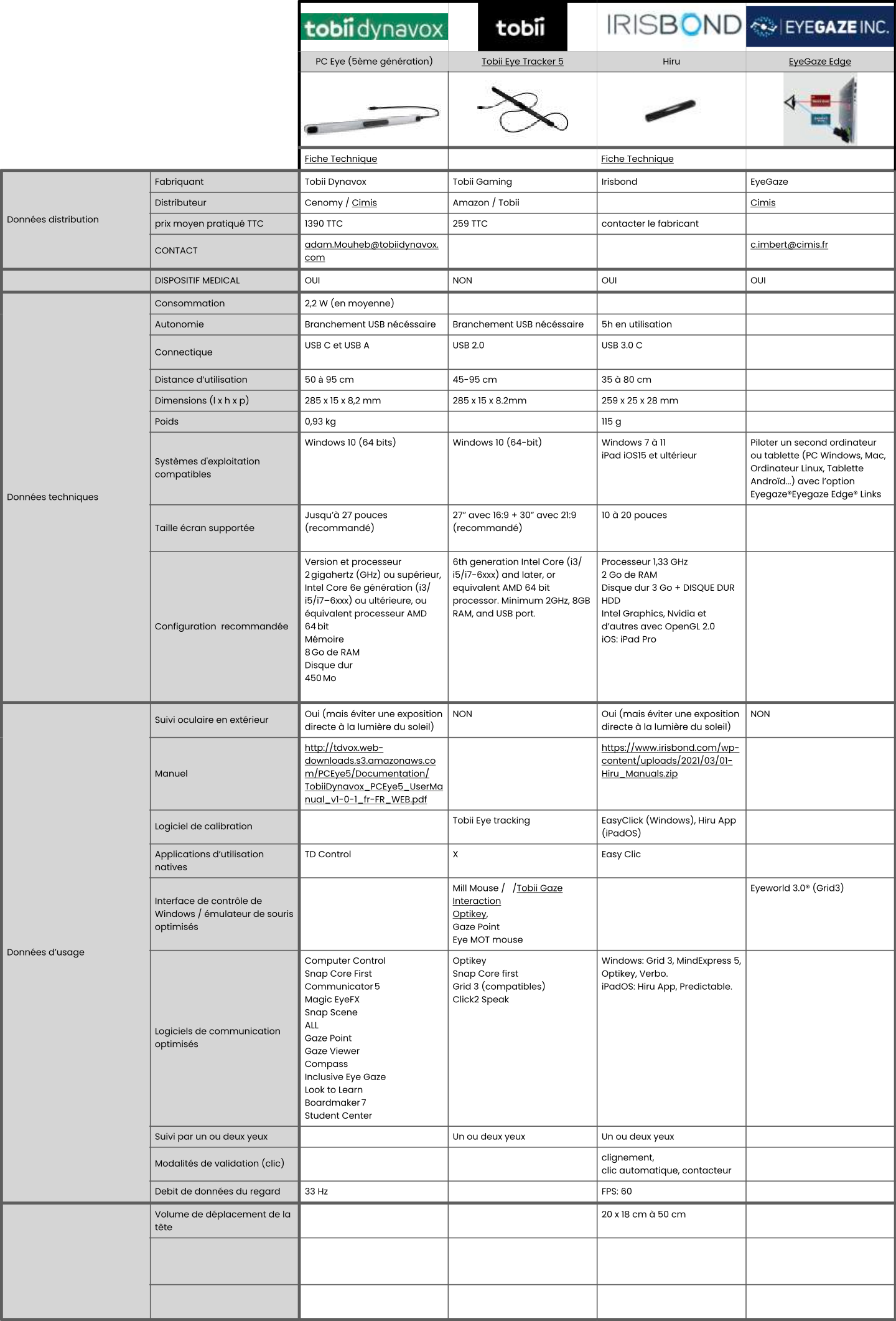 Ce dossier comparatif rassemble de multiples informations permettant d’accompagner le choix et la mise en œuvre  d’une poursuite oculaire dans le cadre de la compensation de la communication ou d’un accès au numérique. Ce domaine évoluant en permanence, il fera l’objet d’actualisations. N’hésitez donc pas à le consulter régulièrement.