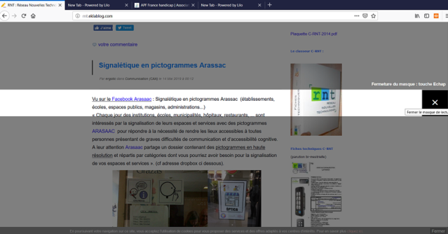 Remarque : si une personne atteinte de trouble de la vision trouvera un lecteur d’écran indispensable, il peut également s’avérer très utile à toute personne non lectrice ou ayant des difficultés d’accès à la lecture (dys).