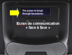 • Communication textuelle personnalisable : Prédiction de mots, phrases en mémoires, taille, forme et couleur du clavier