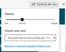 Depuis le même menu, on peut sélectionner la voix de synthèse : voix Hortense sous Windows 8 et 10, ou toute autre voix de synthèse compatible Sapi 5 installée sur l’ordinateur.