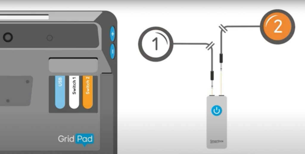 Options d’accès – Vous pouvez accéder au Grid Pad Pro à l’aide de l’écran tactile réactif.  Il existe également deux ports de commutateur disponibles et l’option d’entrée de commutateur sans fil utilisant l’accessoire Wireless Joycable. La prise casque divisera le son prêt pour le balayage auditif. Deux ports USB disponibles permettent d’utiliser d’autres périphériques d’accès alternatifs avec Grid Pad Pro, notamment une souris principale, une manette de jeu ou des Brainfingers.