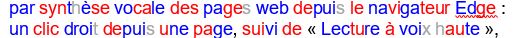 Le texte des définitions proposées est sélectionnable. Ainsi, les utilisateurs présentant des difficultés de lecture pourront les faire lire par voix de synthèse à partir d’un simple clic droit au sein du navigateur Edge, ou à partir d’un logiciel externe comme Natural Reader, Balabolka, etc.