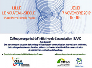 Rappel : L’association ISAAC Francophone, en collaboration avec le CREAI Hauts-de-France et avec le soutien de la CNSA et de la Région Hauts-de-France, organise à Lille le 7 novembre 2019, le colloque :