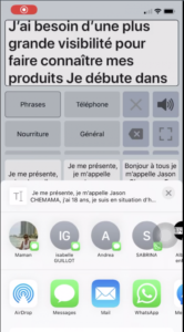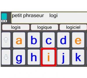 L’écriture d’un texte est assistée d’une prédiction de mots avec possibilité d’appeler des phrases mémorisées à partir de quelques lettres.
