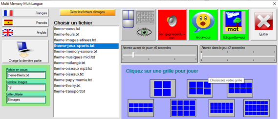 Idée propose en téléchargement gratuit, MultiMemory ML, une nouvelle version de son éditeur de jeux de mémory, comportant de nouvelles options dont un accès en mode défilement utilisant 1 ou 2 contacteurs (défilement automatique ou manuel).