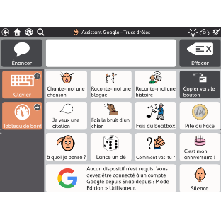 Petit Phraseur permet l’écriture de courts textes de communication restitués par voix de synthèse.