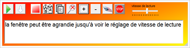 – deux boutons en haut de fenêtre permettent de mettre la lecture en pause, de revenir à la phrase précédente, passer à la suivante.
