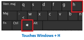Sous Windows 10, nous utilisons la dictée vocale de Microsoft, obtenue en saisissant simultanément les touches logo Windows et H,
