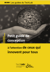 Pour sensibiliser les équipes de conception à la conception universelle, le TechLab a édité un Petit Guide de conception à l’attention de ceux qui innovent pour tous. Ce guide présente les différents types de handicaps et propose quelques règles simples pour améliorer l’accessibilité de vos produits et interfaces.