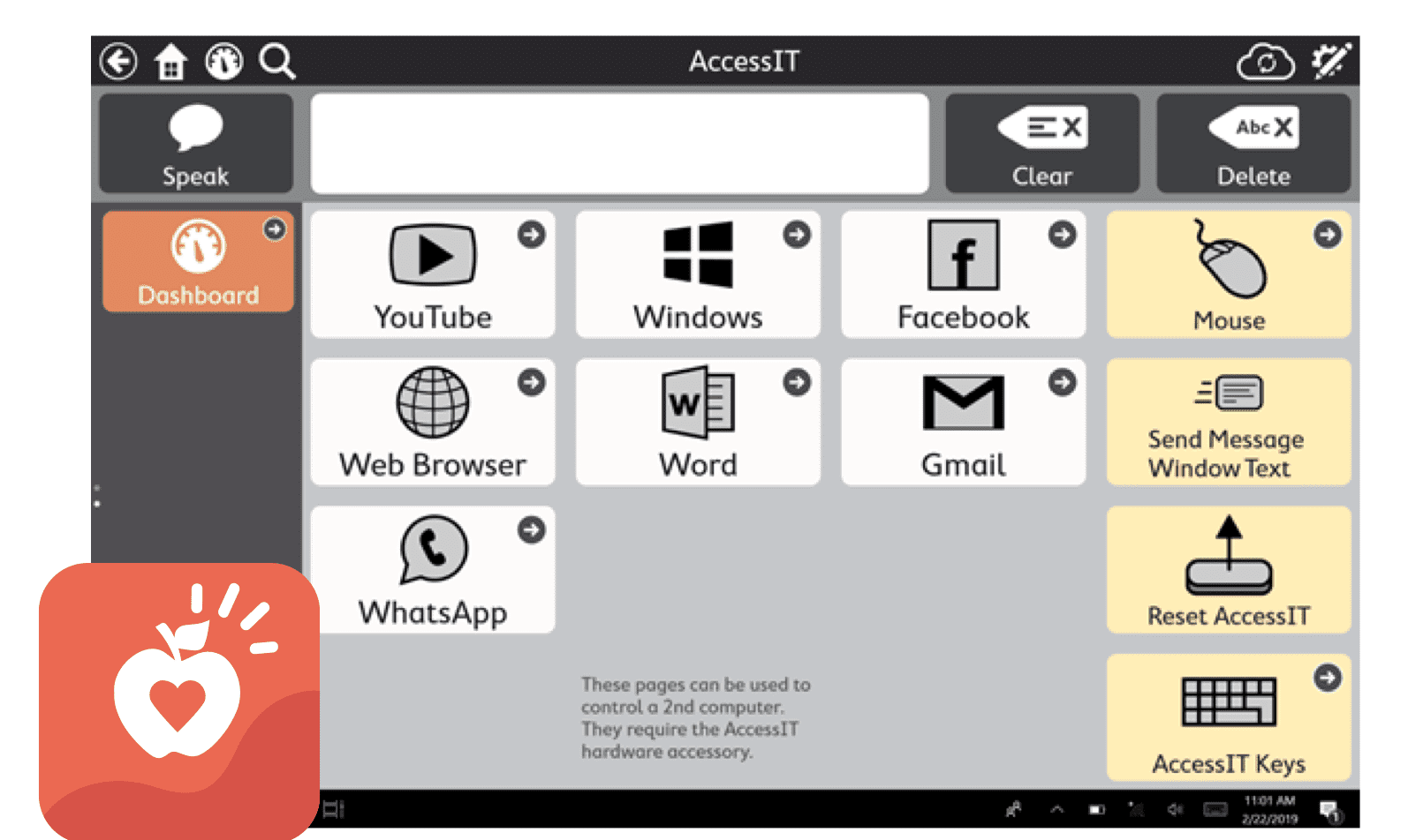 Cette solution offre la possibilité aux personnes utilisant cette application d’aide à la communication d’utiliser un pc sans quitter l’environnement dont ils sont familiers.