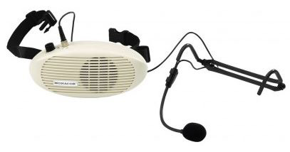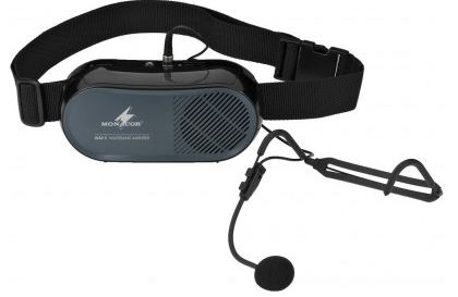 La société Monacor propose à son catalogue des amplificateurs vocaux à moindre coût, efficaces mais moins performants au niveau de la puissance de sortie, de la qualité audio, de l’autonomie après charge, et équipés de microphones montés sur serre tête plus traditionnels :