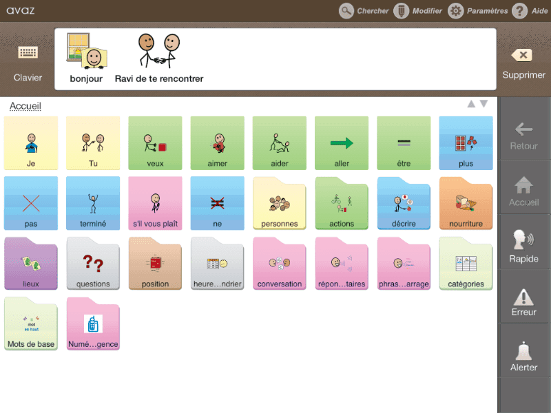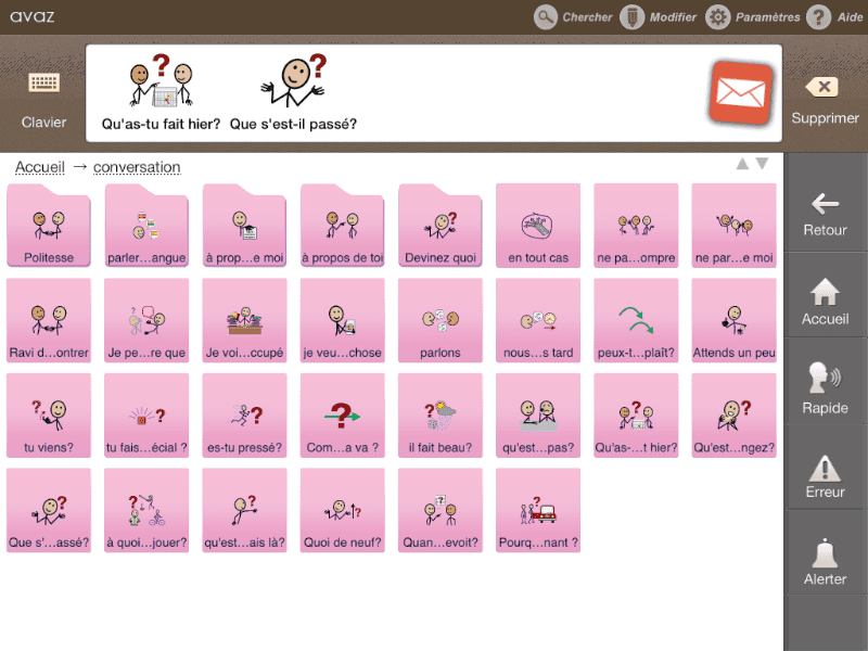 Application d’aide à la communication pictographique / alphabétique assistée par voix de synthèse