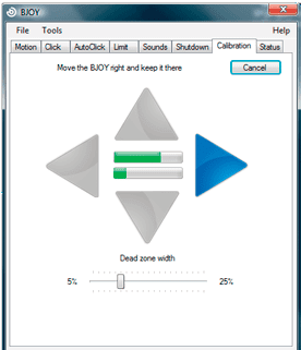 Si l’utilisateur est sujet à des tremblements, il est possible de régler une « zone morte », zone dans laquelle le curseur ne bougera pas même si le joystick est en mouvement : plus la valeur est haute, plus il faudra incliner le joystick pour actionner le curseur, pour compenser des mouvements mal contrôlés.