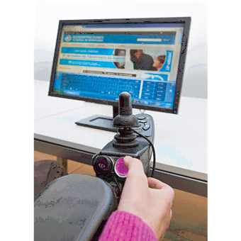 Efficace et intuitif, Bjoy Ring est une solution simple et intéressante permettant l’accès à l’ordinateur, tablette embarquée, smartphone depuis le joystick de son fauteuil roulant électrique, auquel on prévoira un ou deux contacteurs pour les fonctions clic souris.