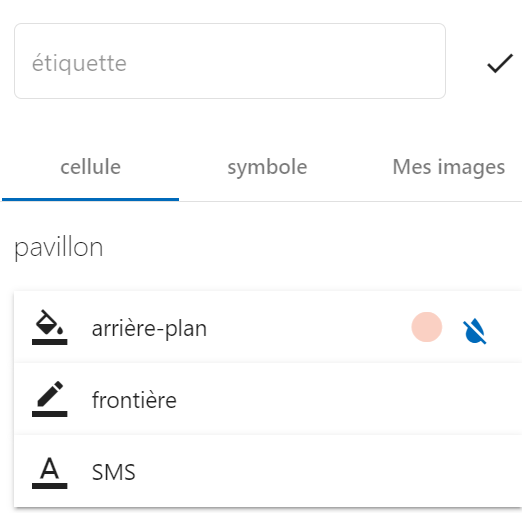 Lorsqu’on sélectionne une cellule un bandeau apparaît sur la droite pour choisir différentes propriétés de la cellule : étiquette (texte), couleur du fond, de la bordure et du texte.