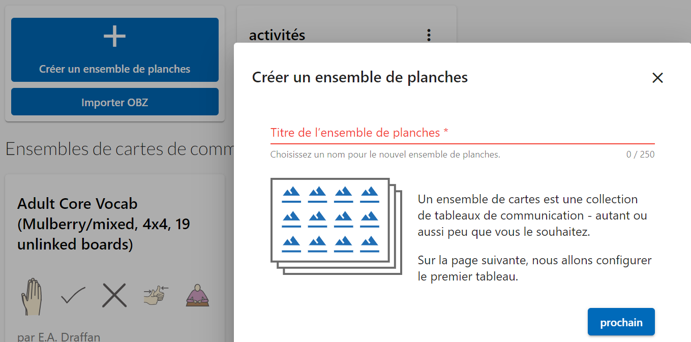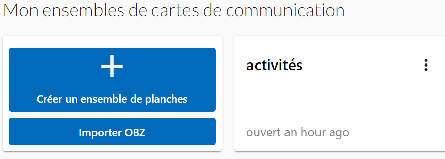 On peut aussi choisir d’importer des tableaux de communication existants à partir de CBoard par exemple.
