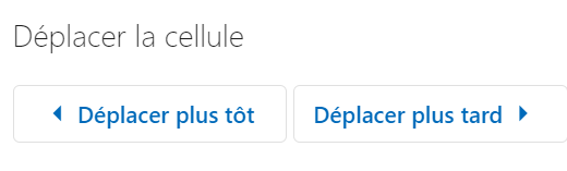 Une cellule peut être déplacée dans le tableau avec les touches “déplacer plus tôt” ou “déplacer plus tard” dans le bandeau de droite – cellule.