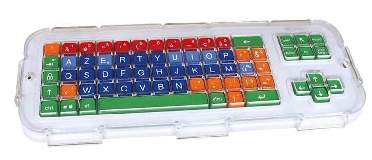 Avec ses touches colorées et agrandies, Clevy ressemble presque à un jouet : normal, car son ergonomie et son esthétique ont été conçues pour de jeunes enfants.