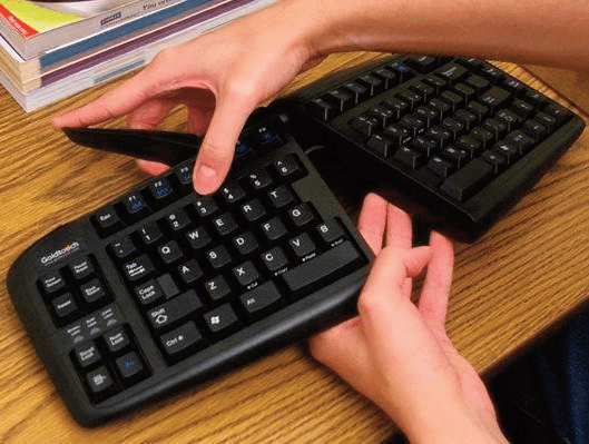 Reconnue maladie professionnelle, la plus courante dans les pays développés, les troubles musculo-squelettiques (T.M.S) qui regroupent de nombreuses pathologies des tissus mous (muscles, tendons, nerfs) préoccupent ergothérapeutes, ergonomes et la médecine du travail. Ayant pour cause la répétition de mêmes gestes dans une position inconfortable avec pour conséquence l’apparition de douleurs articulaires, les T.M.S concernent de nombreux secteurs de la vie professionnelle, y compris la bureautique. A cet effet, de nombreux fabricants s’ingénient à concevoir des claviers spéciaux dans le but de prévenir ou d’en limiter les effets. C’est le cas du clavier Goldtouch qui présente l’originalité d’être séparable en deux parties articulées et ajustables horizontalement et verticalement.