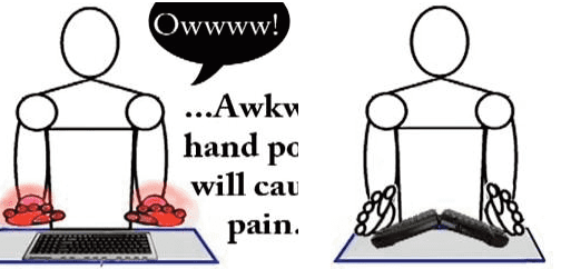 Solution : incliner verticalement le clavier pour ramener le poignet dans une position plus confortable.