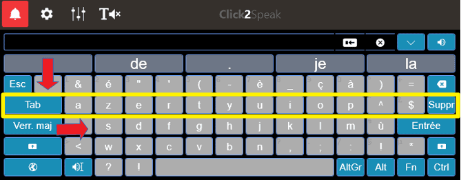 Important : le mode prédictif apporte un gain de saisie auprès de personnes qui maîtrisent l’orthographe : attention, car le logiciel étant auto apprenant, les erreurs de saisie seront automatiquement mémorisées après saisie d’un espace. A ce niveau, il manque à Click2Speak, un éditeur pour accéder aux dictionnaires afin de les modifier, compléter, corriger l’importation de mots mal orthographiés, etc.