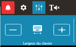 Bouton de réglages rapides : largeur et hauteur du clavier, l’agrandissement des cases au survol de la souris, le déplacement du clavier, et la vitesse associée au clic automatique.