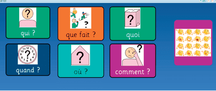 Elle donne à l’utilisateur les moyens de parler en l’illustrant d’un sujet en particulier. Sur le même principe, une fonction permet de réaliser une activité “d’association” à l’aide d’une combinaison d’images, de mots et de sons (Fig. 5).