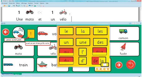La bibliothèque Crick 3 de Clicker comporte environ 2 500 images de la vie quotidienne, et peut intégrer toute image présente dans l’ordinateur.
