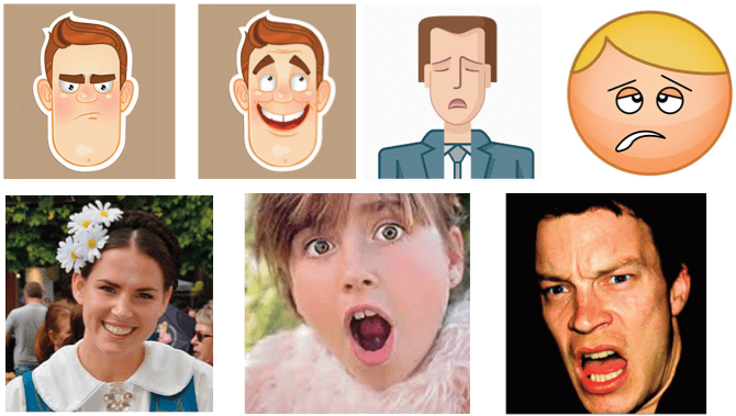 Imiter permet de reconnaitre les expressions sur les photos d’autrui, mais aussi de les agir sur soi :