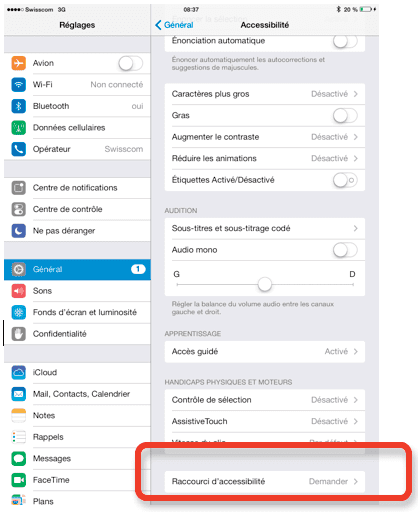 NB : les traductions des items à régler sur le iPad sont parfois surprenantes…