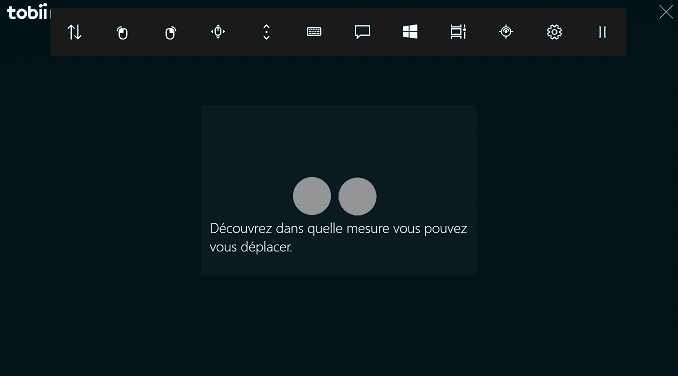 En dehors du mode d’approche précise, on peut également contrôler la souris en fixant le regard sur les boutons clic gauche ou clic droit de la barre de menu puis en déplaçant le regard à l’endroit de l’écran où l’on souhaite que l’action se produise.