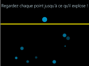 Un clic sur le bouton Calibrage lance l’étalonnage : l’écran affiche la position des yeux, puis demande de regarder une série de points jusqu’à ce qu’ils explosent : d’abord un point situé au centre de l’écran, puis deux fois trois points disposés en triangle.