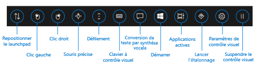 Le bouton situé tout à droite, permet de mettre en pause la commande visuelle : une nouvelle fixation sur le bouton pause réactive la barre.
