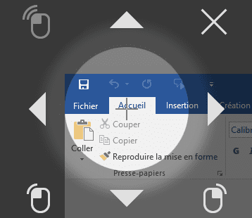Pour annuler une interaction de la souris après l’avoir sélectionnée, regarder en dehors de l’écran puis revenir à la barre de menu.