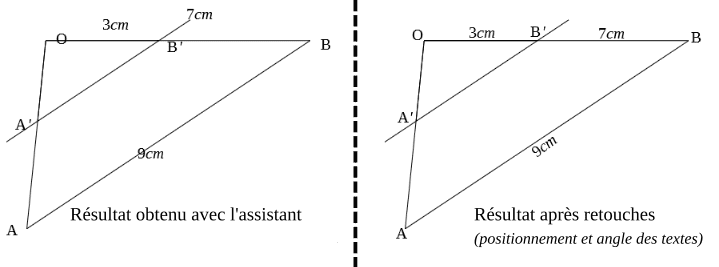Gdmaths et AHmath3D proposent des assistants pour la création de figures géométriques, mais vous pouvez personnaliser les tracés obtenus en utilisant les outils proposés (redresser les textes, les déplacer, passer un trait en pointillés…) Attention, cependant, nous avons constaté quelques plantages lorsqu’on emploie les outils de AHmath3d avec des figures créées par Gdmaths et vice-versa.