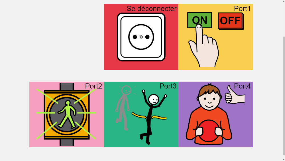 Les pictogrammes utilisés sont ceux de la base Arasaac, vous pouvez éditer le code de la page avec n’importe quel éditeur de texte et aller modifier les numéros des pictogrammes pour que les illustrations sur les boutons reflètent mieux les actions réalisées.
