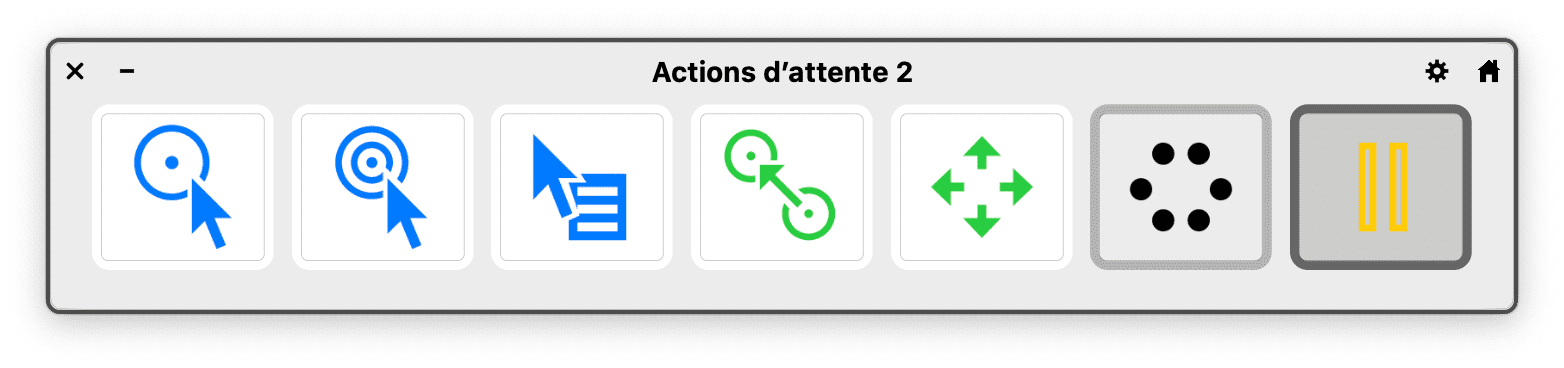 Déplacer le curseur est une chose, cliquer en est une autre. La fonction attente, émule la validation ainsi que les différentes fonction de clic (dites fonctions d’attente) comme le clic gauche, le clic droit, le double clic ou le glisser déplacer.