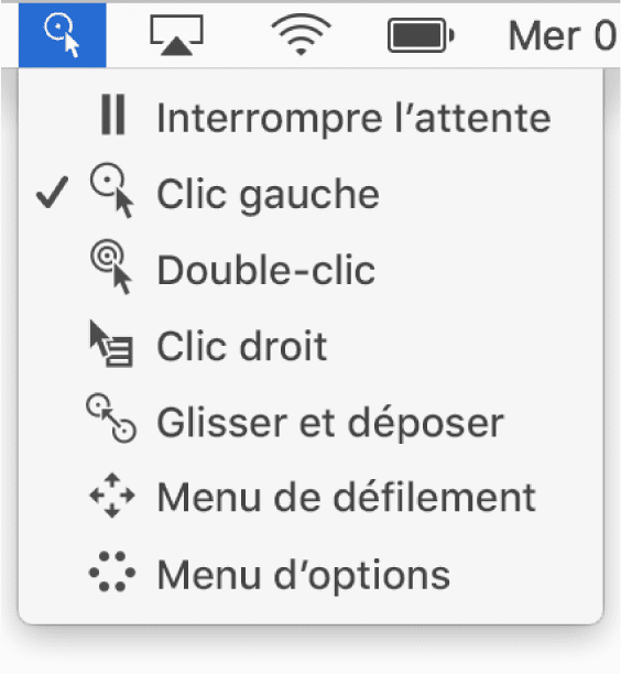 Déplacer le curseur est une chose, cliquer en est une autre. La fonction attente, émule la validation ainsi que les différentes fonction de clic (dites fonctions d’attente) comme le clic gauche, le clic droit, le double clic ou le glisser déplacer.