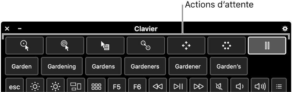 Ces options peuvent être activées depuis le clavier d’accessibilité. Dans le coin supérieur droit du clavier, en cliquant sur le bouton options de sous-fenêtre / choisissez attente, puis choisissez une option.