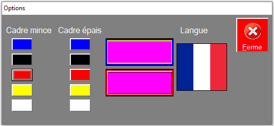 Le menu réglages (petite clé en haut à droite), permet de choisir la taille et couleur de la bordure. Les dimensions du cadre se règlent par clic maintenu déplacé sur les bords. La fenêtre se déplace depuis un clic maintenu sur le bord inférieur droit. Ancien, mais toujours compatible Windows 10.