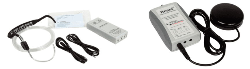 En option, le transmetteur Beam permettra à l’utilisateur d’utiliser 1 à 3 contacteurs en mode sans fil et correspondant aux clics souris, solution utile auprès d’utilisateurs se déplaçant en fauteuil roulant électrique.