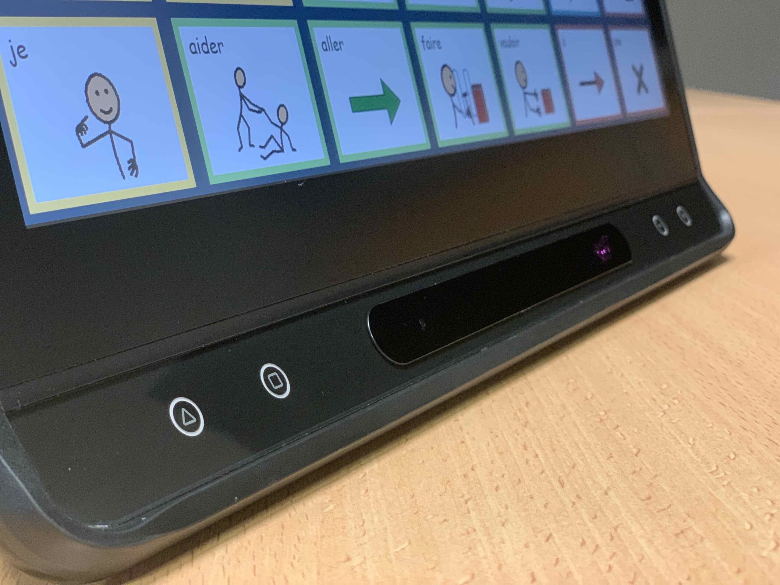 Sachez que le I-Séries peut être fourni avec des accessoires complémentaires tels un guide-doigts adapté aux logiciels de communication pour compléter l’utilisation de la poursuite oculaire, par exemple par une validation tactile ou pour alterner les modalités d’accès.