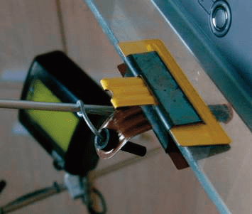 L’astuce conçue par SystErgo consiste à équiper la tige de la licorne d’un embout en caoutchouc souple et conducteur, clipsable sur la tige qui assure la conduction par l’intermédiaire d’un câble avec une feuille d’aluminium, en contact avec le front et enroulée sur la face avant du serre tête.